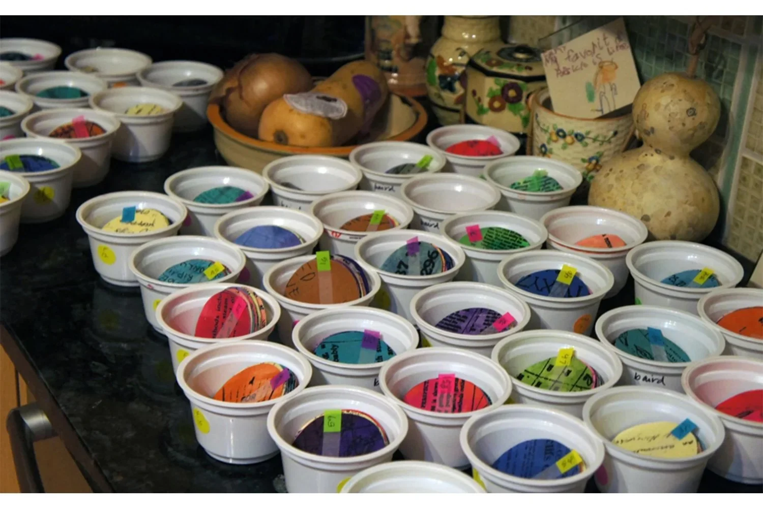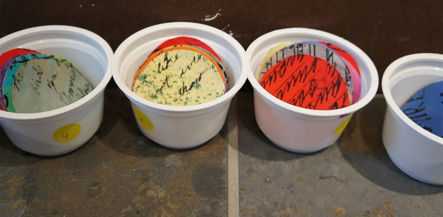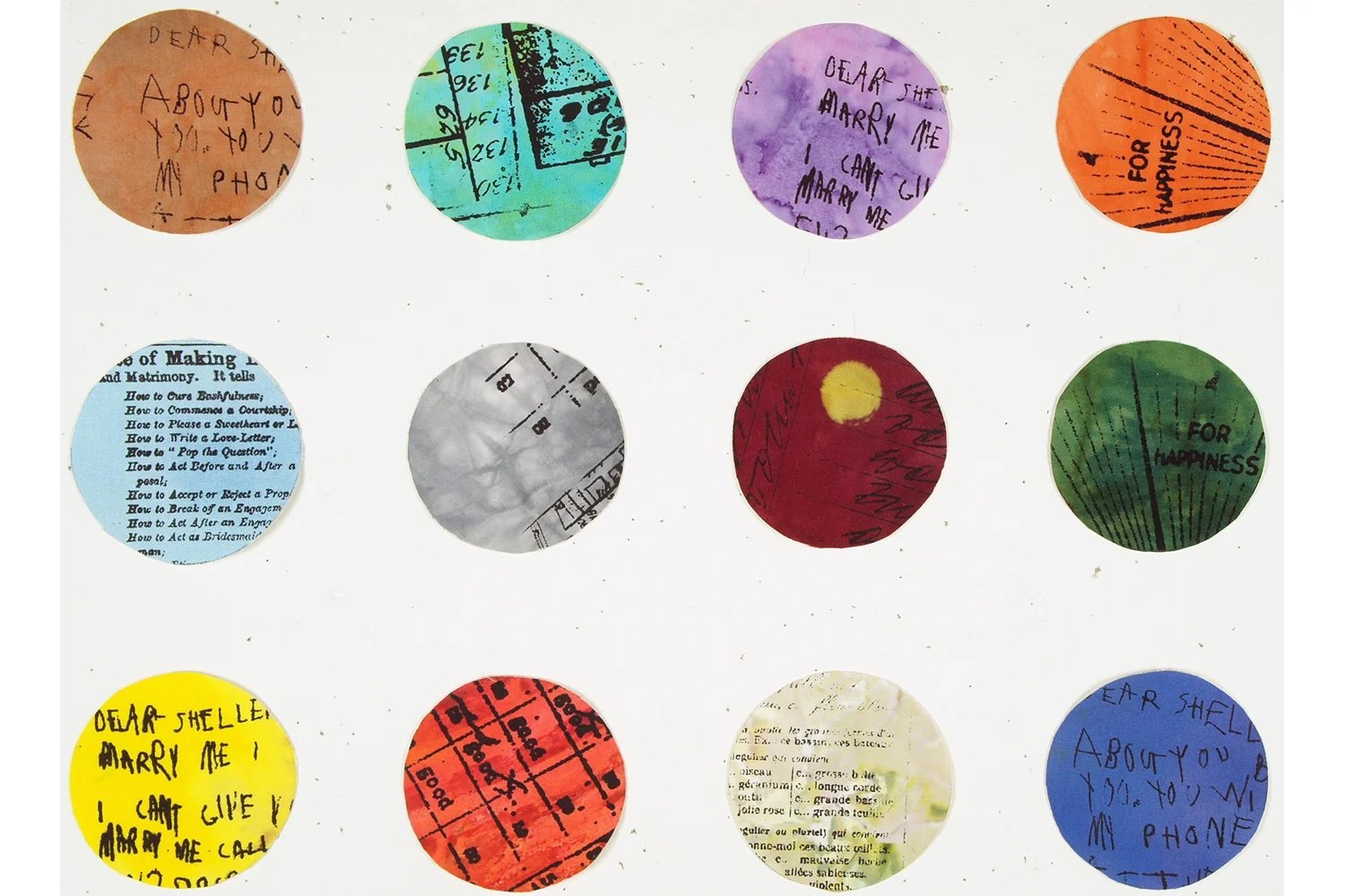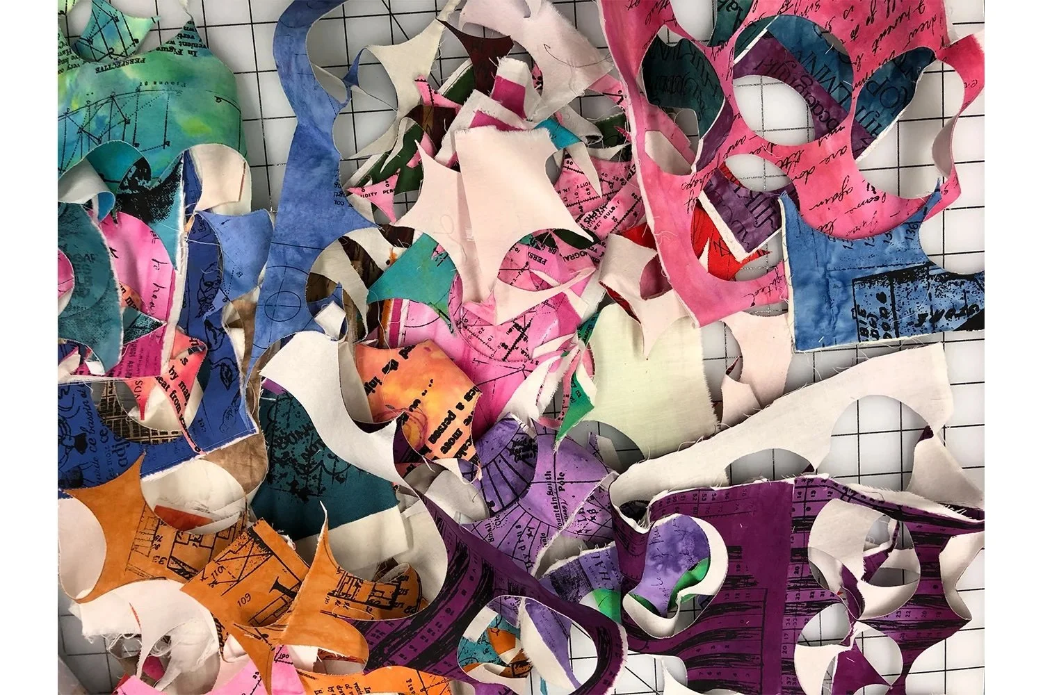 TEXTILED is an exercise in expanding space. The objective of the gallery was to present textiles that fit in a mailing tube. My intention was to dye and screen fabric to make as many circles that could fit into the tube (approximately 1460) which stretched the confines of 3 × 36 inches into 6 × 27 feet.